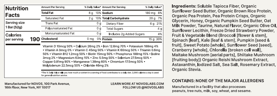 | Serving Size | 1 bar (52 g) |