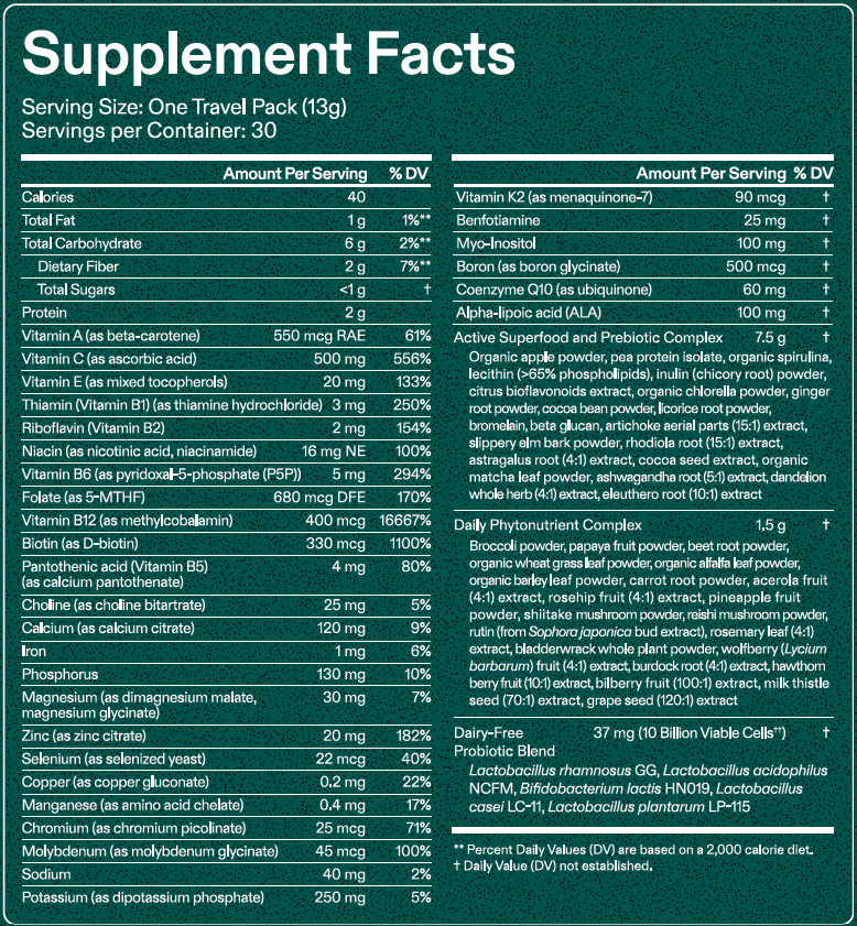 | Purpose / Goal | Brain Health Cardiovascular Health Digestive Health Energy Enhancement Immune Function |