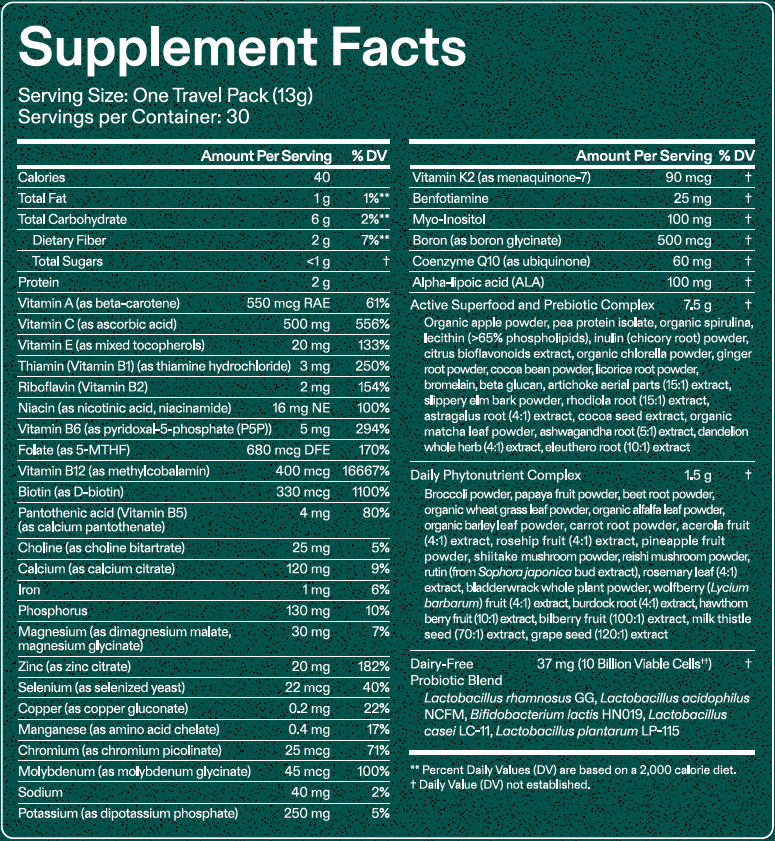| Serving Size | 1 travel pack (13 g) |
