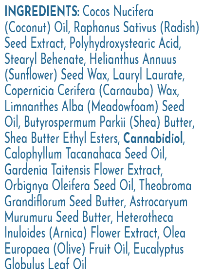 | Purpose / Goal | Body Care CBD/Hemp-Check your organization's rules Natural/Organic Post-Workout Pre-Workout |